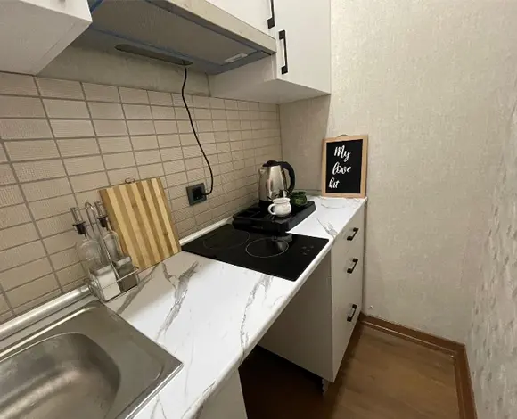 مطبخ مجهز بالأدوات الأساسية لإعداد الوجبات