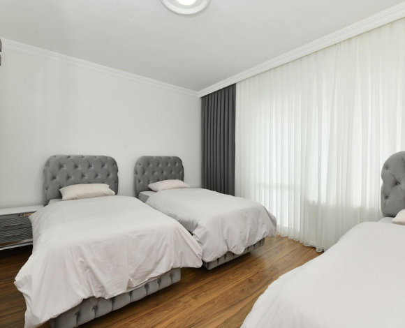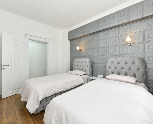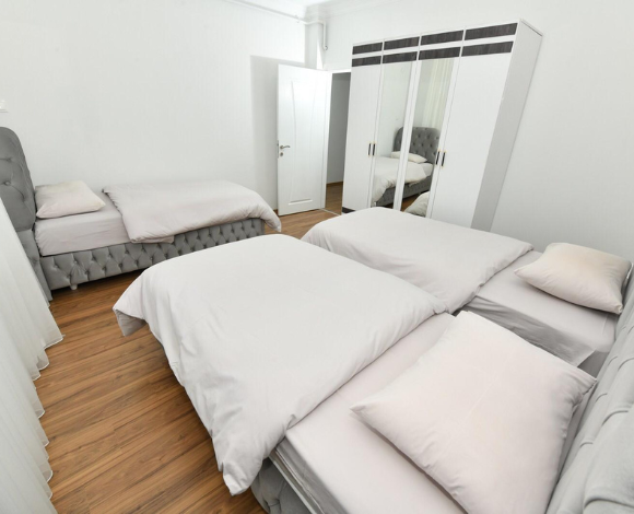 تم تصميم الشقة بعناية لتلبي احتياجات الباحثين عن الراحة و الخصوصية. تتكوّن من أربع غرف نوم مستقلة، كل غرفة مجهزة بأسرّة مريحة، خزائن ملابس، و أثاث عصري بسيط يوفّر أجواء هادئة و مناسبة للنوم والاسترخاء. هذا التوزيع العملي يجعل الشقة مثالية للعائلات الكبيرة أو مجموعات الأصدقاء الذين يفضّلون الإقامة في شقق للايجار يومي في اسطنبول بدل الغرف الفندقية الضيقة.