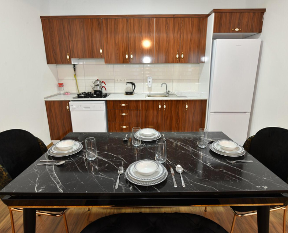 تحتوي الشقة على مطبخ مجهز بجميع الأدوات الأساسية التي تحتاجها لإعداد وجباتك اليومية بسهولة، و هو عنصر مهم لكل من يفضّل شقق للايجار يومي في اسطنبول التي توفّر مرونة أكبر من الفنادق. سواء كنت ترغب بتحضير وجبة سريعة أو طعام منزلي كامل، ستجد كل ما يلزمك متوفرًا داخل الشقة.